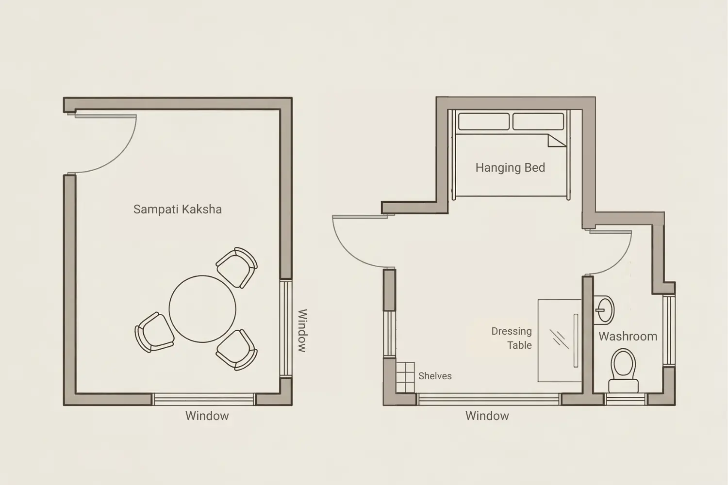 This kutir is dedicated to the immortal King of bears "Jamvant", known for his immense strength and wisdom who inspired Hanuman to leap to Lanka. Jamvant served as a mentor to Sugreev and Rama and played a crucial role in the war against Ravana. This kutir is basically a bamboo cottage plastered with mud and cow dung giving old and rustic Jungle Vibes.